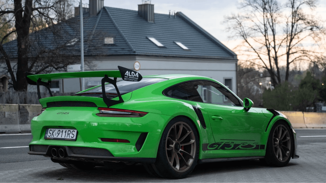 Porsche 911 (991.2) GT3 RS z 2019 roku, pochodzące z polskiego salonu, z przebiegiem 21 000 km. Samochód napędzany jest 4,0-litrowym silnikiem o mocy 520 KM, współpracującym z 7-biegową automatyczną skrzynią PDK. Drugi właściciel podkreśla, że auto jest "zdecydowanie zadbane". Pojazd był Porsche Approved do sierpnia 2025 roku. Egzemplarz wyróżnia się bogatą specyfikacją z linii Porsche Exclusive Manufaktur, obejmującą m.in. obszytą skórą deskę rozdzielczą z kontrastowym szwem, elementy wykończone alcantarą pasujące kolorystycznie do lakieru, podświetlane osłony progów. Samochód wyposażono w kute felgi GT2 RS 20/21 cali z centralną śrubą, system unoszenia przedniej osi, skrętną tylną oś, pełne fotele kubełkowe carbonowe oraz 6-punktowe pasy bezpieczeństwa.
