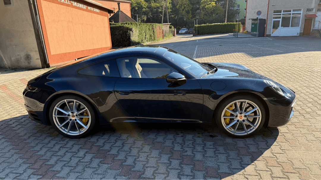 Porsche 911 (997.1) Carrera S z 2007 roku z przebiegiem 99 696 km, sprowadzone z Japonii. Samochód napędzany jest 3,8-litrowym silnikiem o mocy 355 KM, współpracującym z automatyczną skrzynią biegów Tiptronic. Auto trafiło do Polski w lutym 2025 roku i znajduje się w posiadaniu sprzedającego od tego czasu, w Polsce przejechało niecałe 5 000 km. Według sprzedającego pojazd pochodzi od pierwszego właściciela w Japonii i jest bardzo zadbany, z lakierem oryginalnym i drobnymi odpryskami od kamieni w kilku miejscach. Po rejestracji wykonano serwis olejowy wraz z wymianą oleju w skrzyni biegów oraz nabicie klimatyzacji. Wnętrze wykończone czarną skórą z podsufitką z czarnej alcantary.