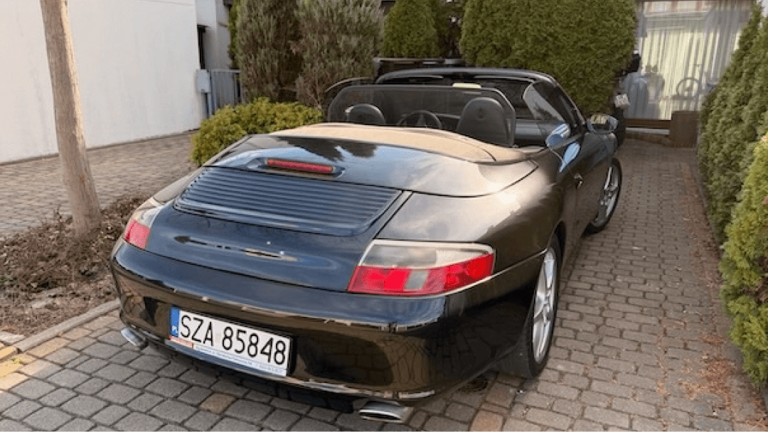 Porsche 911 (996) Carrera Cabrio z 2003 roku, sprowadzone z USA, z przebiegiem 72 000 km. Samochód napędzany jest 3,6-litrowym silnikiem o mocy 325 KM, sparowanym z manualną skrzynią biegów. Sprzedający podkreśla bezwypadkowość pojazdu i deklaruje brak korozji zarówno na karoserii, jak i od spodu. Według właściciela dach składany działa bez zarzutu, wnętrze prezentuje się bardzo dobrze, a silnik i skrzynia nie wykazują wycieków. Auto przeszło serwis po zakupie w marcu 2024 roku, wymieniono świece i cewki. Sprzedający informuje o jednym miejscu z lekko wygiętym łączeniem progu z podłogą widocznym od spodu.